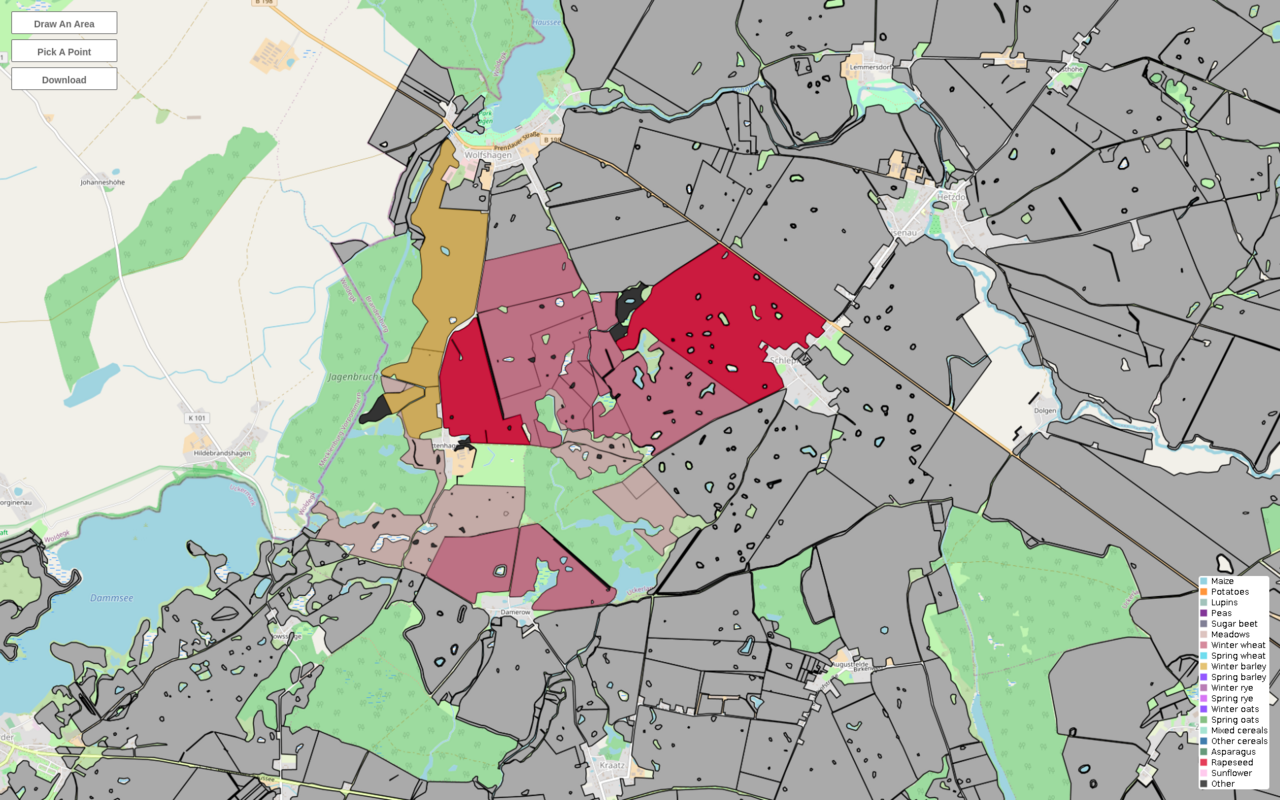 Together with our partner dida Datenschmiede GmbH, the CropClass project uses optical (Sentinel-2) and radar (Sentinel-1) satellite data to classify crop types at different growth stages.